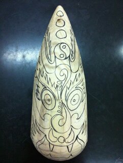 可想而知,这节课会开展的异常顺利。受到多种作品的启发,大多数学生已经对自己的作品有了想法。本节课的练习目标是,能够参考自己打印的图稿,将喜欢的图案用铅笔画在面具上。练习期间,学生认真、慎重的对待自己的作品,不少人害怕自己画的左右不对称而向我求助,我当然是很乐意帮助他们的。短短12分钟时间竟然有十几个孩子能将草图画完,而这一点超出另外我的预期的。课堂时间可能对大多数同学来说不够,下课铃响的时候,很多同学发出遗憾的叹息声。