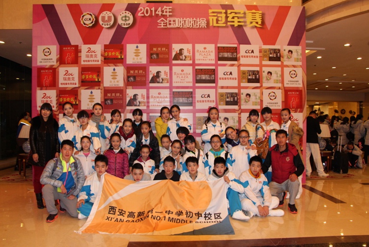 日前,在2014年全国啦啦操冠军赛上,高新一中初中校区心阳光啦啦操队取得了中学甲组技巧3级规定动作第一名、中学甲组花球规定动作第十四名的好成绩。