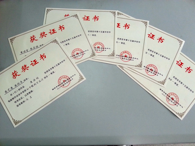 西安市第十五届中小学电脑制作活动评选结果已揭晓,我校评选类项目经校,区逐层选拔共有14件作品获奖,其中一等奖6个,二等奖6个,三等奖2个,获奖数量和奖项继续保持在西安市前列。同时在雁塔区2014年中小学生电脑作品评选活动中,我校独占鳌头包揽了初中组网页制作、电脑绘画、电脑动画三项目的所有一等奖,冯彦、党斌、任晋东老师荣获“优秀辅导教师”称号。