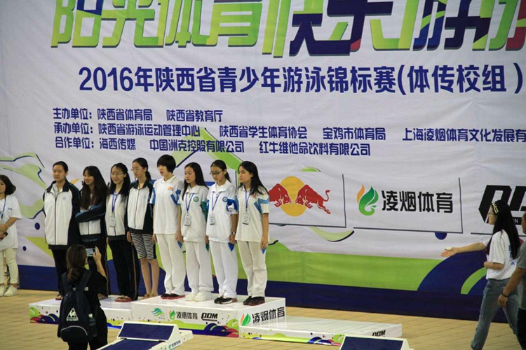 在刚刚结束的陕西省青少年游泳锦标赛上,我校游泳代表队共14人参加比赛,经过激烈角逐,我校代表队荣获15金1银2铜、团体总分第一的好成绩,奖牌数和金牌数均列第一。