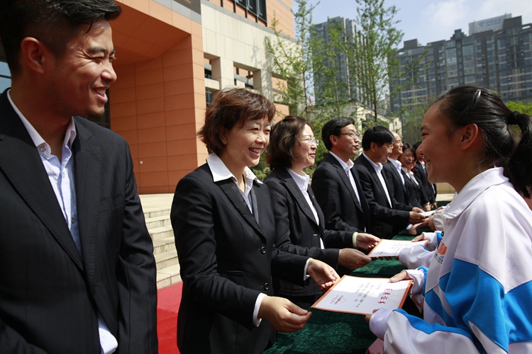 颁奖仪式由校长助理张颖主持,她说:“两个多月前,我们在这里集会,为我校学生综合素质评定获奖的同学举行了隆重的颁奖典礼。今天我们再一次集会,为本学期在特长发展方面取得优异成绩的同学们颁奖。