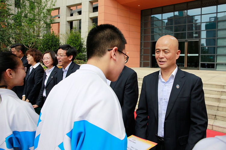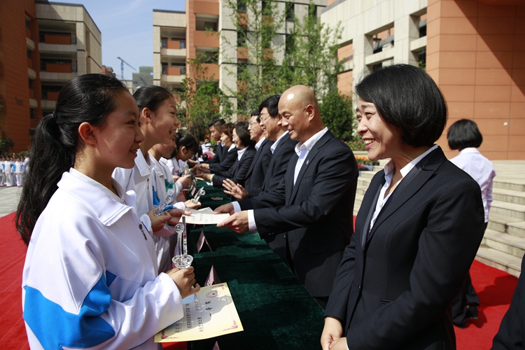 高新一中初中校区党总支书记兼校长王凤进、常务副校长张振斌、副校长贺三宁、副校长刘丽君、副校长张小英、副校长李红霞、校长助理张颖、校长助理牛金平、工会主席兼校办主任吴永胜、校长助理董军,八年级教务主任李政、特色教育中心教务主任胡清元等学校领导为同学们颁发了荣誉证书。