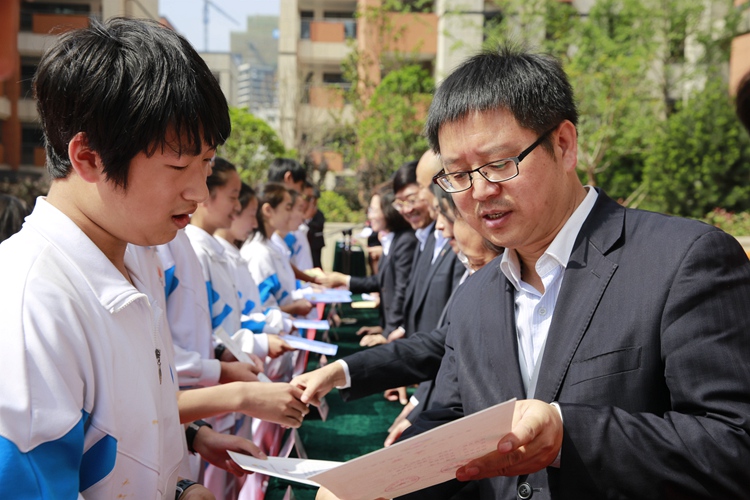副校长贺三宁给特长发展获奖学生颁奖