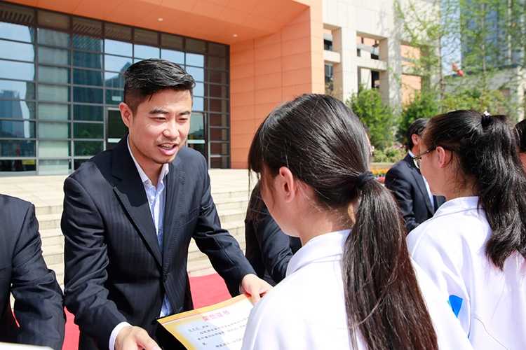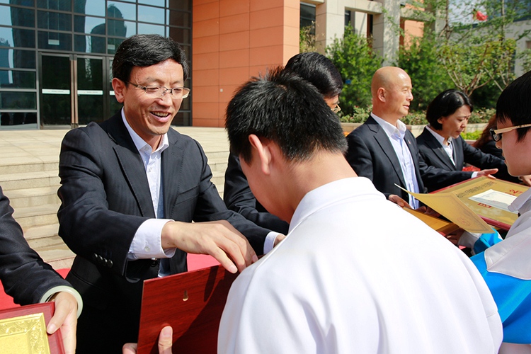 常务副校长张振斌给特长发展获奖学生颁奖