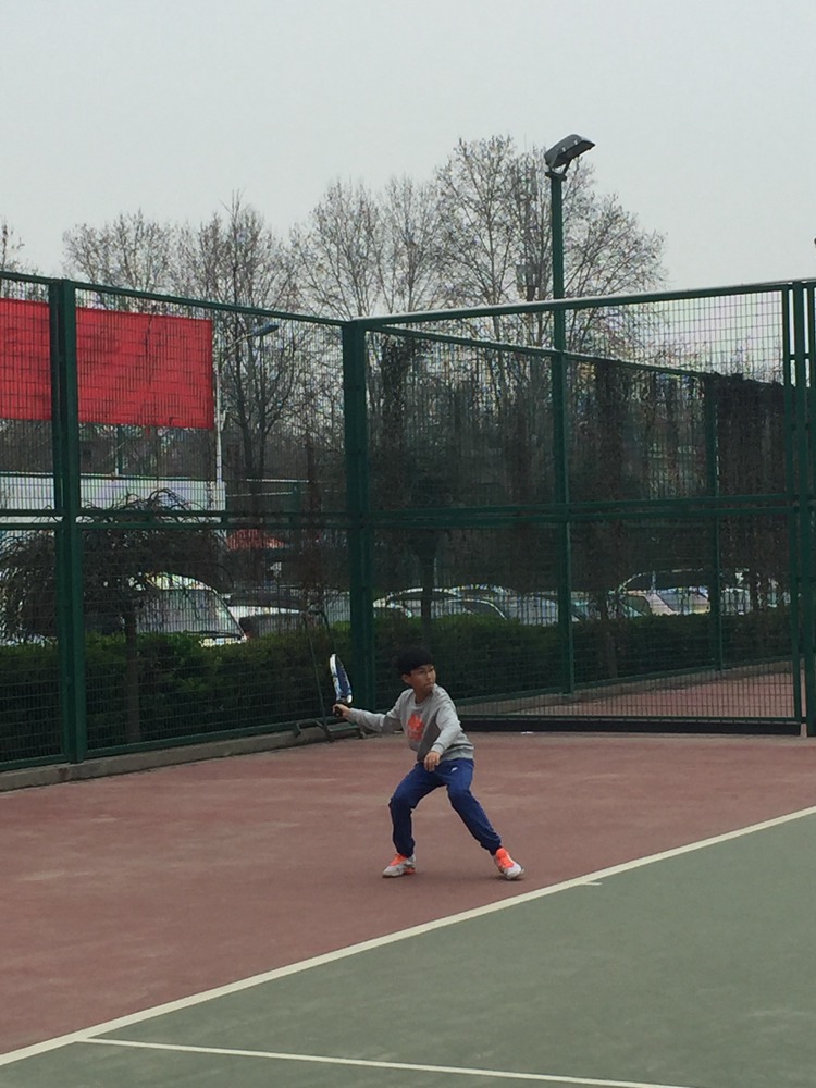 本次赛事为期两天,由西安市体育局主办,西安市网球协会承办。同往年一样,今年的比赛设男、女甲、乙、丙组单打项目。全市共有12支代表队共96名选手参赛,是历年来参赛人数最多、水平最高、竞争最为激烈的一次赛事。为了打好这次比赛,队员们从去年秋天开始集训,积极备战。即使是上学期期末考试临近,训练也没有中断。深冬的早晨寒风凛冽,不到七点,吴老师已经在球场带着队员们苦练本领。为了培养一支高水平的球队,吴老师针对每一位队员量身定做了一整套训练计划。除了每天早上训练发球和体能,周二、四放学后及周六下午也要进行系统训练。底线球的精准,网前球的技巧,高远球的角度,削球的弧度,常常为了固定一个小动作要练上成千上万次。除了网球技巧,吴老师非常重视体能的训练。他指导队员们说:“网球是一项考核球员综合素质的运动项目,力量、速度、柔韧性、预判能力、心理调节能力都要达标才能在大赛中胜出。”雾霾横扫西安的日子,队员们就在球馆里练篮球、跳绳及运动器械,提高队员们的综合素质。今年春天,为了提高队员的实战能力,每周都进行队员之间以及与外校队员之间的比赛,根据比赛暴露出的问题进行针对性的训练。