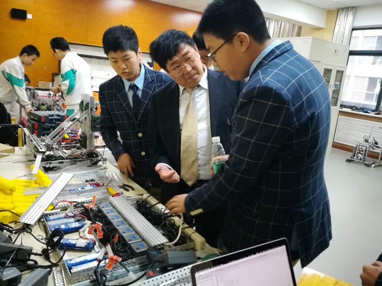 王校长与队员们讨论机器人结构