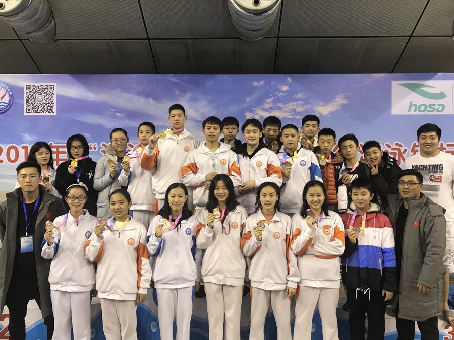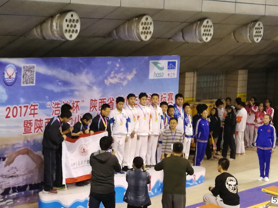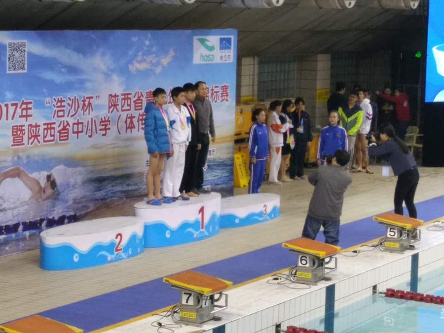 12月24日,在2017陕西省青少年游泳锦标赛中,我校游泳健儿技压群雄,力斩11金,16银,14铜,收获41枚奖牌,取得了初中组团体第一名。同时,8人5项创陕西省中学生新记录,创历史新高。