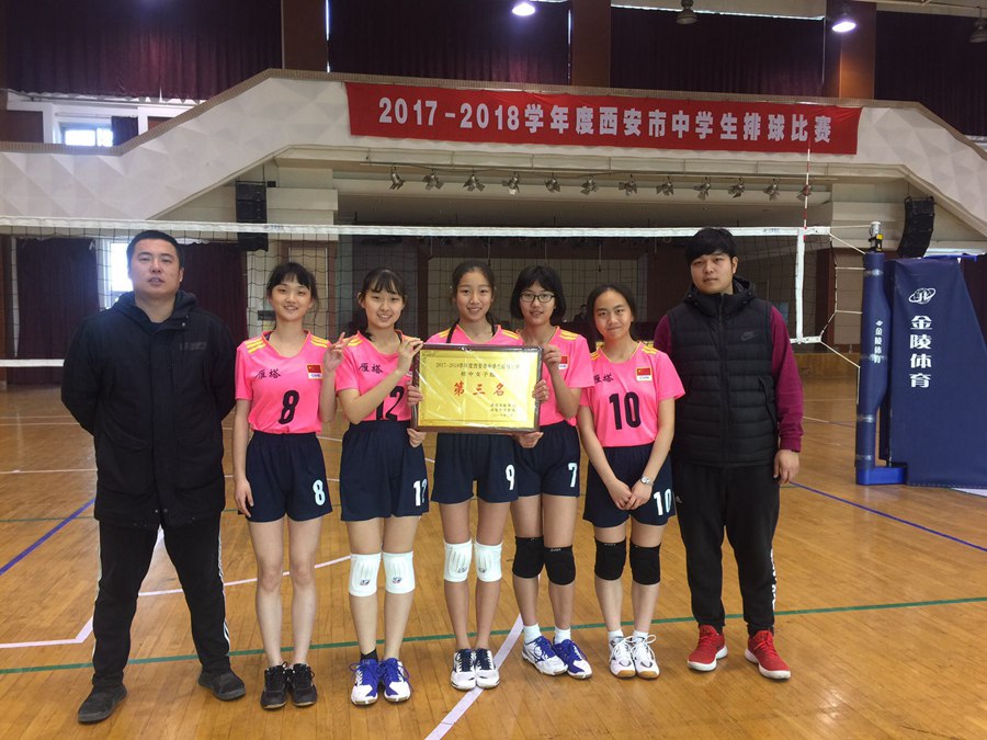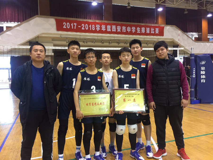 在3月9日-11日的2017-2018学年度西安市中学生排球比赛中,经雁塔区层层选拔,我校排球队十一名学生被选中,并代表雁塔区参加此次比赛。经过三天八个区县的激烈角逐,我校代表队获得了男子第一名和女子第三名的优异成绩。尤其是男队力克去年卫冕冠军夺得本次比赛冠军,这是我校建队一年来首次参加重大比赛获得的成绩,同时王琛和赵家豪老师被评为本次比赛的优秀教练员。