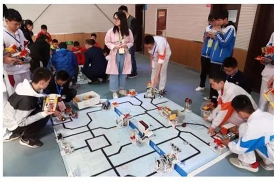 我们是一个团队,我们和老师一起朝夕相处,度过了这段非常充实又充满乐趣的时光。我们在马老师和辅导老师的指导下,搭建、编程、调试……和老师一起探讨如何解决问题的方案,然后自己不断地调试、改进,通过动手实践学习到的学科知识。