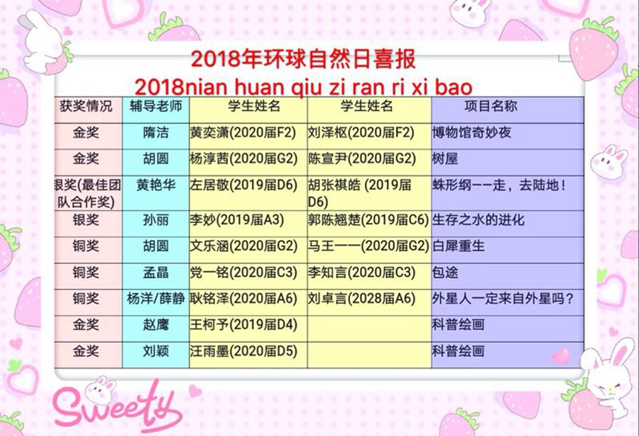 所有的成绩都是来之不易的,离不开每一位学生、家长、教师的付出。那就让我们看一看各路高新侠在本届环球自然日中的出色表现。