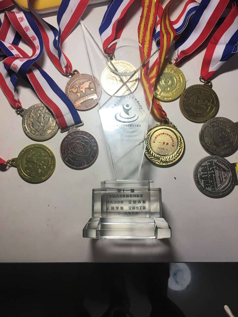 在校期间,曾荣获环球自然日全球总决赛全球金奖、全国科学影像节二等奖、全国青少年创意大赛三等奖、陕西省科技创新大赛一等奖、西安市科技创新大赛一等奖、雁塔区科技创新大赛一等奖、陕西省宋庆龄少年儿童发明奖铜奖、2017年陕西省科普绘画大赛一等奖……等多项奖项和荣誉。