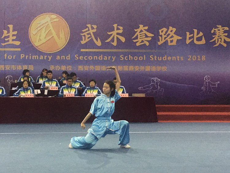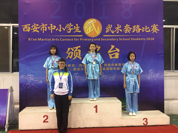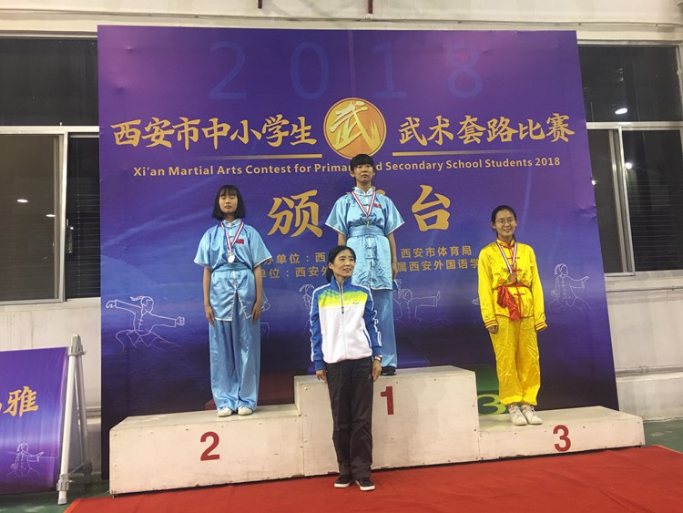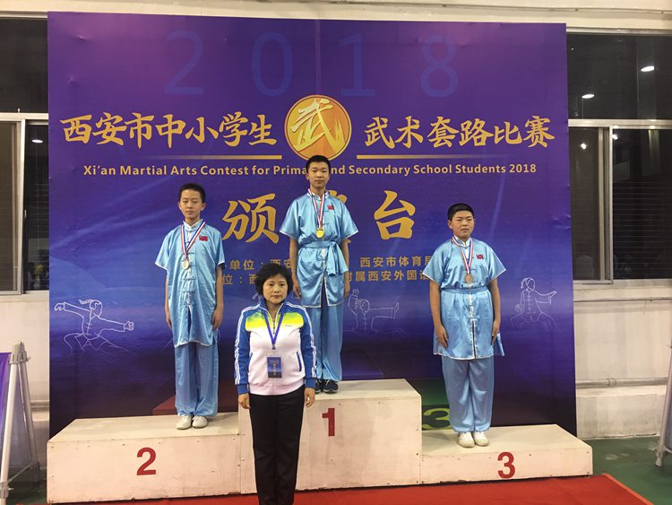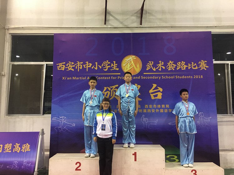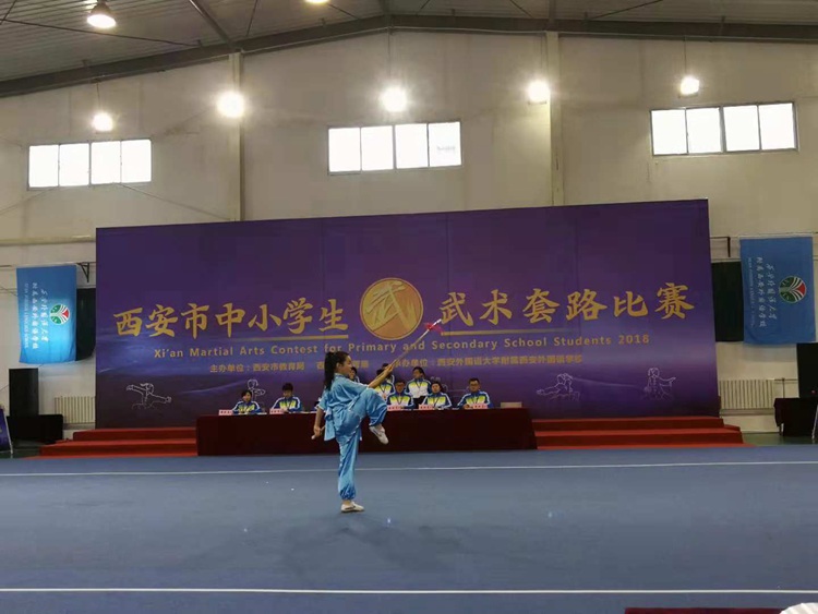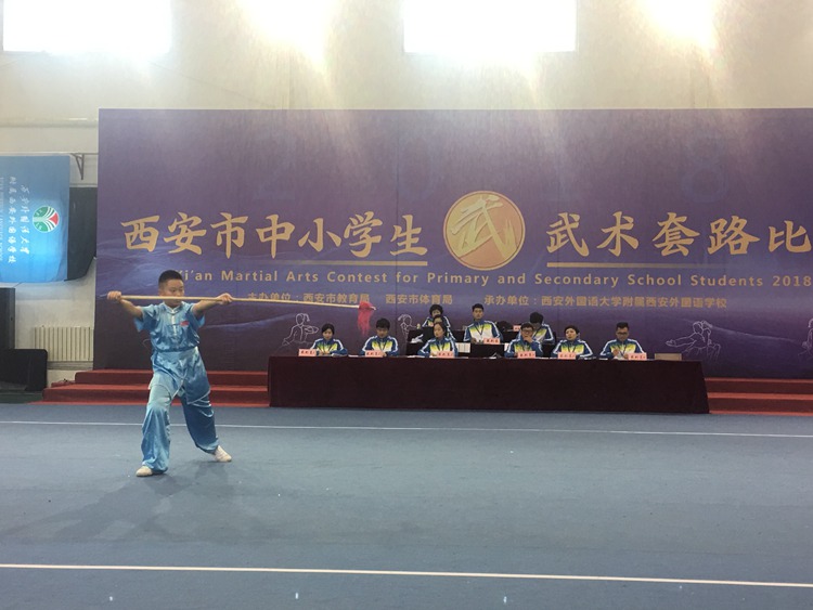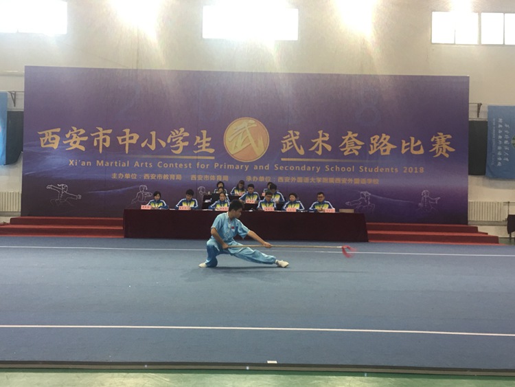 本次比赛由西安市教育局,西安市体育局主办,西安外国语大学附属外国语学校承办,共有来自13个区县代表队,228名教练员、运动员参加此次比赛。我校15名学生分别代表高新区和雁塔区参加西安市中小学生武术套路比赛,共获得5个第一名、5个第二名、4个第三名的成绩。所有去的学生都获得了中考体育免试的资格。