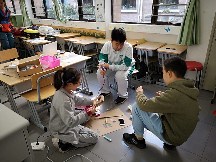 梁以杉和队友一起设计战车