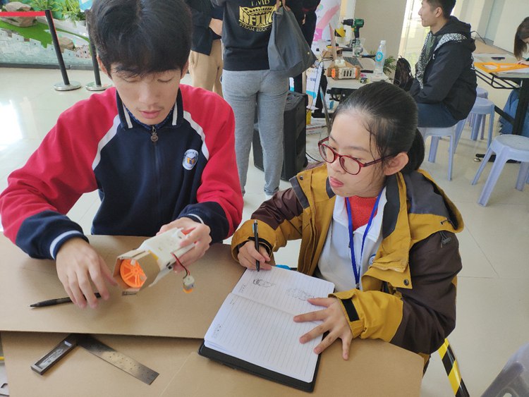 这是11月17日在上海市实验学校举办的第三届上海市学生创客马拉松极限挑战赛中选手们遇到的难题。如何用有限的材料,在限定的时间内组装成战车进行组间PK,各个队伍斗智斗勇,极限挑战赛里满满的STEAM味道。