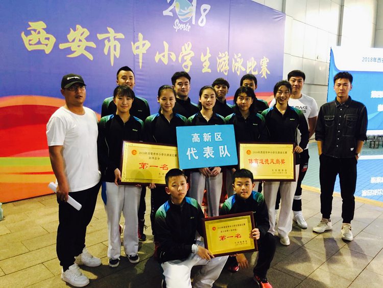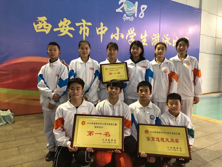 在11月25日结束的2018年西安市中小学生游泳比赛中,高新一中初中游泳“梦之队”代表高新区初中组斩获11金12银6铜,以29枚奖牌的优异成绩再登西安市比赛王者宝座!