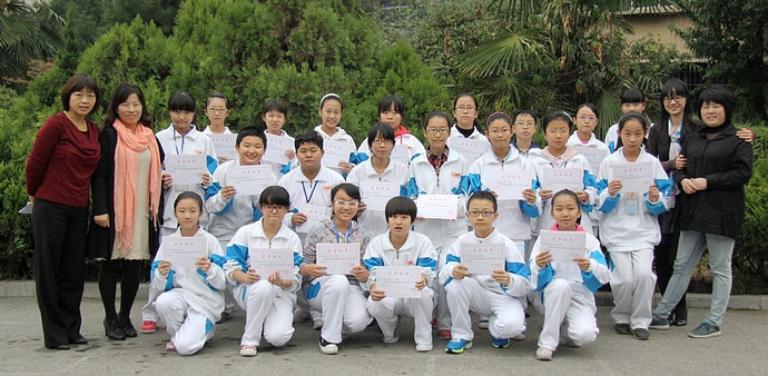 获得“语文”探究作业一等奖的学生合影
