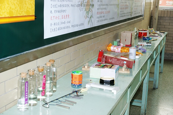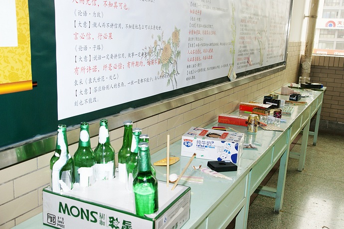 学校大厅的长桌上陈列着各式各样的手工制品,不细看很可能误认为是美术课的作品。这些都是同学们利用国庆小长假,以生活中常见的废玻璃瓶、塑料管、家装后剩余的钢管等材料为原料,利用物理学中振动发声的原理制作而成的。仔细观察,用手摸一摸、弹一弹,用嘴吹一吹,用小棍敲一敲,它们都会发出一串串美妙的音符。铁管有“钢管琴”的清脆动听,塑料管有“排箫”的浑厚悠扬,竹筒有“笛子”的婉转悦耳……