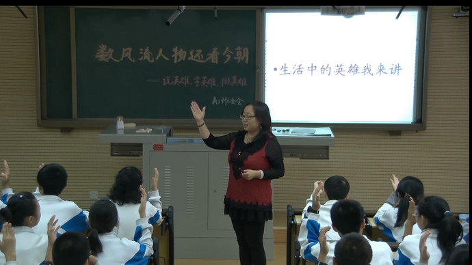 孙玉蓉老师的班会主题为“数英雄人物还看今朝——说英雄, 学英雄,做英雄”,为学生树立身边学习的榜样,使他们明白英雄离我们并不遥远,平凡当中也会出英雄,只要心中有国家、有集体、有他人,无私奉献,我们都会成为英雄。班会中,学生与老师互动,畅所欲言。学生的精彩发言不仅让同学们报以热烈的掌声,也让在场的所有老师赞叹不已。