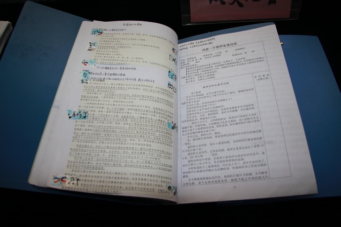 B4班庄尚锟同学写道:“以前只看到老师上课拿着几张纸,然而,当我今天看到那一本本成本成册的教案,彷佛看到了老师的日日辛劳,真的被感动了、震撼了。老师们是用笔、用心、用无数的思绪来编织着我们的梦想和未来,我们绝不能辜负老师的辛苦,要更加的努力,给老师以回报。”