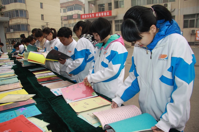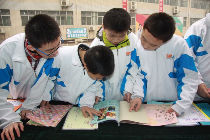 学生们阅览优秀学生作业