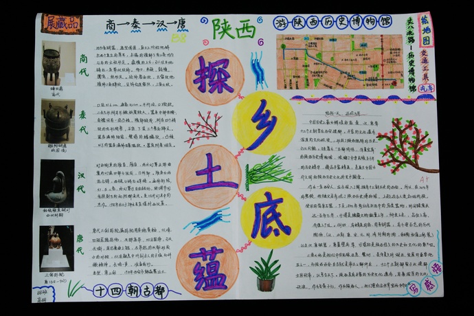 文史地综合探究:分“探乡土底蕴、品民俗文化、与经典同行”三个板块,同学们利用假期,走进陕西这块拥有厚重历史的土地,阅读这本无字大书背后的历史和文化,参观陕西历史博物馆,绘地图、展藏品、写感悟,进一步了解陕西历史文化;走进今年生肖“马”文化,同学们积累有关马的成语、诗歌、对联、谜语,了解马在中国文化中的象征意义等内容,并踊跃参与央视春联征集活动。同时还阅读《海底两万里》、《傅雷家书》(亲子共读)等书,在读书中摘抄,写出感受至深的读后感,读书,教会他们去发现人生的价值,获得独立的自我和人格!“悠悠书香情,丝丝沁我心;漫漫学海路,步步催我行。”文史地综合探究作业让同学们增长智慧,陶冶性情!真可谓“不登高山,不知天之高也;不临深溪,不知地之厚也。”同学们的作品或手写手绘,或图文并茂,无论是一根蜡笔,还是一张地图,都抒写着青春最甜美的歌!