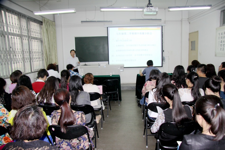 在学校的统一部署下,七年级各教研组、各年级组在本学期第10至第11周进行了为期两周的期中考试质量分析会。各位组长精心准备,提前安排,我们听不到抱怨、听不到指责,每位老师都认真分析,仔细研究,感恩他人,反思自己。发言与大家分享的老师更是毫无保留的把自己的做法和思考开诚布公的告知每一个与会的老师,开拓了思路、激活了思想、共享了成果、树立了目标。