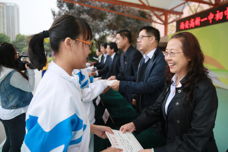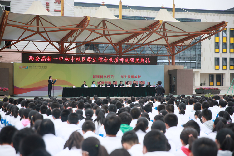 秋高气爽,硕果飘香。在这丰收的美好季节,高新一中初中校区全体师生及部分家长代表齐聚学校操场,隆重举行每学期一次的综合素质评定颁奖典礼,奖励在2013—2014学年度第二学期综合素质评定中表现突出的同学们。