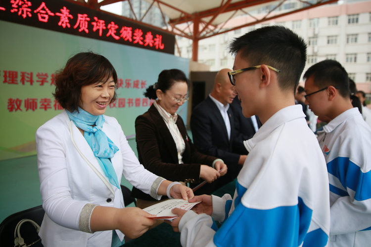 教务处主任张颖主持了大会,副校长张振斌宣布了表彰决定,副校长张小英和副校长李红霞分别宣布了2015、2016届综合素质评定获奖学生名单。