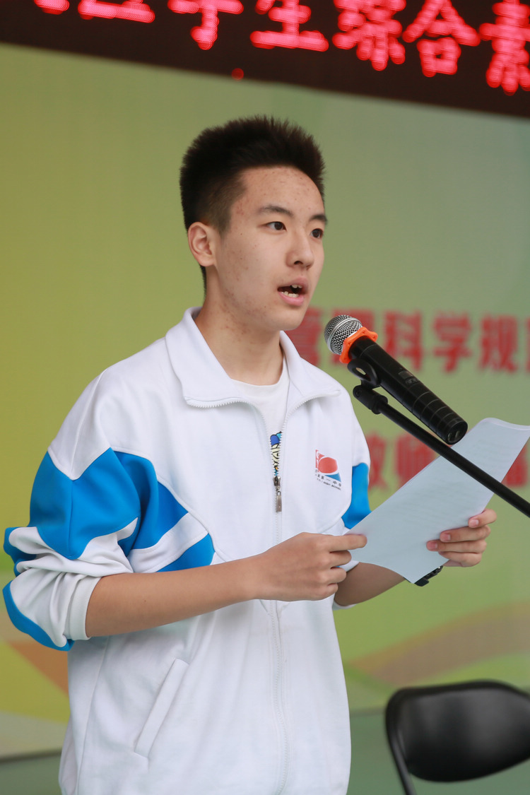 九年级A1班的孙海宁同学、八年级B3班的陈珮琪同学代表获奖同学发表了感言。孙海宁同学满怀深情的表达了感恩之情:感恩集体给予自己的温暖,感恩父母的深情养育,感恩老师的谆谆教诲,一路相伴;他回忆美好的校园生活:文学社中的舞文弄墨,艺术节上的点染丹青;模联会中的睥睨江山;他激励意气风发的同学们:珍惜时间,勇担责任,对如歌的生命负责,追逐梦想,让青春绽放。九年级B4班邓乐嘉同学的家长也代表家长讲了话,他对我校忘我工作、默默付出的可敬可爱的老师们表达了最诚挚的感谢,同时希望同学们能在这个和谐美好、充满活力的校园,努力拼搏,积极进取,洒下汗水,收获成长。