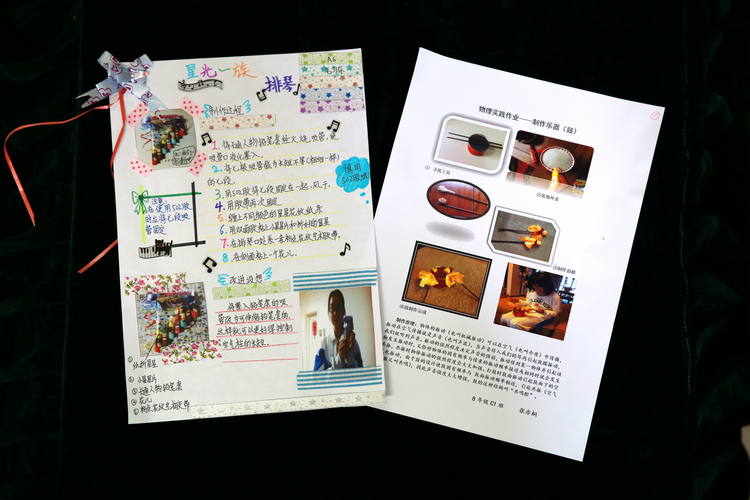学了《声现象》以后,同学们探究乐器的发声原理,探究乐音的特性,利用生活中常见的材料和废弃物品自制简易乐器,同学们制作的乐器有:三弦、笛子、排琴、风铃、二胡、小鼓、吉他、小号、小提琴、箫等,它们发出的声音有强有弱,有高有低,有的浑厚,有的清脆,制作精美,可以演奏出美妙的弦律,同学们通过亲自动手制作体验了探究的乐趣,通过动手实践使课内的知识学以致用,迸发出思维创新的火花……