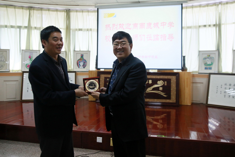 校长王凤进向鹿城中学领导赠送纪念品