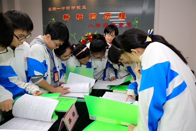相信老师们优良的教风、爱岗敬业的作风会影响到每一位高新学子。 一本本散发着油墨清香的教案集,见证了八年级教师的智慧与心血; 一句句精密细致的旁批,承载着教师对课堂教学持之以恒的探索;一段段深刻切实的反思,体现着教师对课堂教学完美无缺的追求.因为我们肩负着打造高效课堂,全面提高教育教学质量,为高新教育的发展贡献力量的神圣使命。是的,这就是我们辛勤而幸福的耕耘历程,这历程启迪着我们教育的智慧,指导着我们前行的脚步。