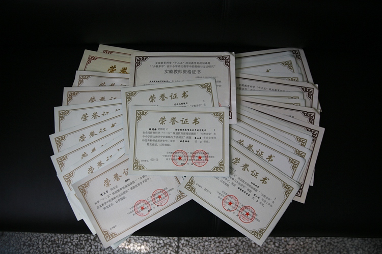 其中王凤进校长,贺三宁副校长获少教多学优秀学术指导奖, 每丽娟、李志龙两位老师获得少教多学优秀主持人奖,祁砚业、原红丽、张昱、杨明格、陈莎、刘倩六位老师被认证为本课题实验教师,另外,祁砚业、原红丽、张昱、杨明格、陈莎、刘倩、张宏、于晓亮几位老师在关于少教多学论文、课件、教学设计、课堂实录等方面均获奖。
