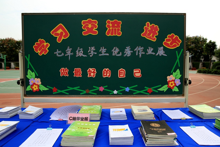 为进一步加强教学常规管理,不断提高学生作业书写水平和规范意识,端正学生的作业态度,养成认真、工整的书写习惯,营造同伴间互相学习、共同提高的氛围。9月24日,高新一中初中校区一分校在学校操场举行了七年级学生优秀作业展活动。