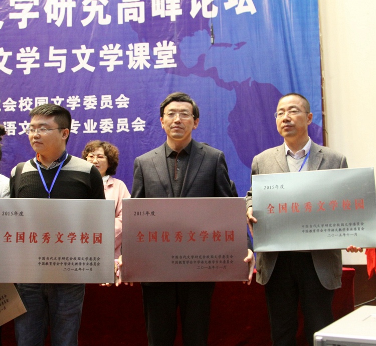 在全国校园文学成果展览及评比中,我校获“全国优秀文学校园”荣誉称号,张振斌副校长被评选为“全国文学校园建设工作优秀校长”、
