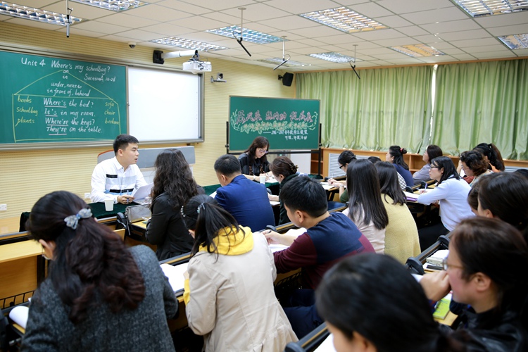 10月20日,我校英语组参加了一分校举行的“展风采、练内功、促成长”青年教师汇报课暨教研活动。此次活动主要是为了提高青年教师的课堂教学水平,促进青年教师对教育工作岗位有充分的认识并快速成长。学校副校长张小英、校长助理张颖、郭戈主任、吴春芳主任、英语组全体教师、黄陵桥山培训老师及其他各科部分教师和师大来实习部分老师参加了本次教研活动。