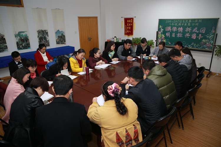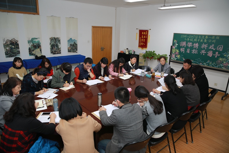 紧张繁忙的期中考试虽已落下帷幕,但“摸学情,析成因,明目标,共携手”的2016—2017学年度第一学期期中质量分析会仍在继续。