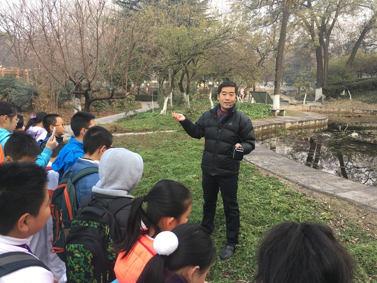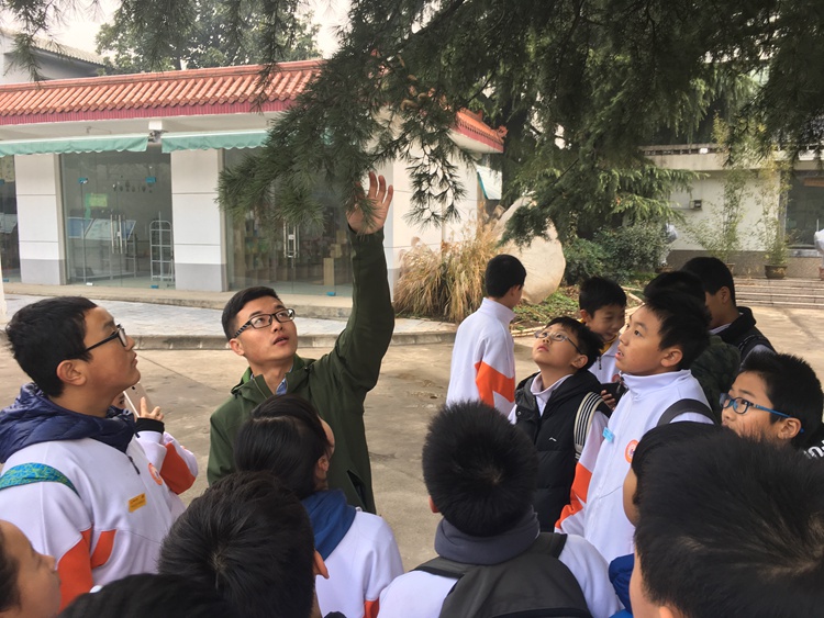 植物学家们首先带领孩子们认识植物园引种、研究的植物,从植物多样性、植物物候、植物引种驯化、观赏植物、水生植物、有毒植物等多个方面向学生们介绍了院内多种多样的植物。然后引导孩子们观察、提问,思考户外的植物们如何渡过西安严峻的冬天。孩子们通过观察与研究有了很多有趣的发现:有些植物采取“舍末保本”的方法,落叶越冬;常青绿树采取“穿甲戴盔”的方法用产生蜡质膜或油脂傲雪抗严寒;有些植物长出冬芽穿上毛衣越冬……真是八仙过海各显神通啊!
