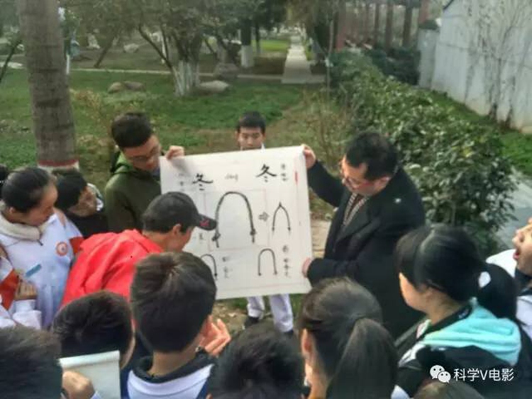 活动间隙,西安外国语大学教授、图书馆原馆长刘正怀老师为同学们讲述汉字“冬”的演变过程。