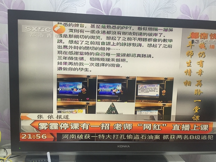 在连续两天的在线直播授课中,我校不同学科的老师分别进行了网络直播授课,也引来两万多人关注。有家长认为,雾霾确实给学生的学习带来不少影响,但是学校应对“停课不停学”所推出的直播课,减少了家长们的部分担忧,孩子在家里学习,可以更放松,更能放得开提问,感觉和老师的距离也拉近了。