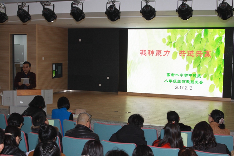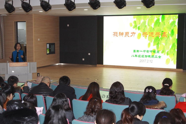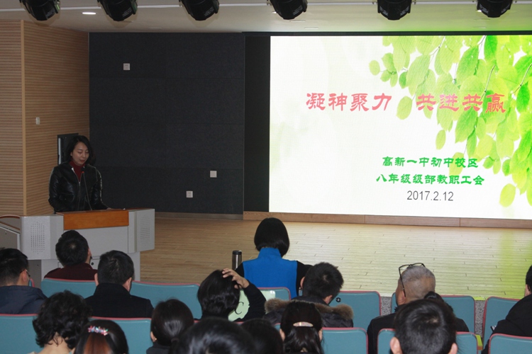 2017年2月12日下午,在新春的喜庆与开学的欢愉双重裹挟之下,八年级全体教职工召开了主题为“凝神聚力,共进共赢”的级部大会。