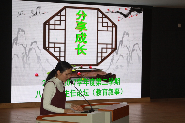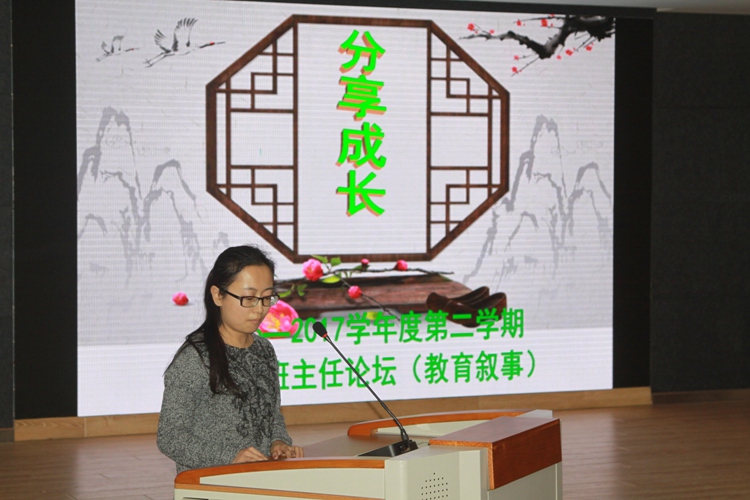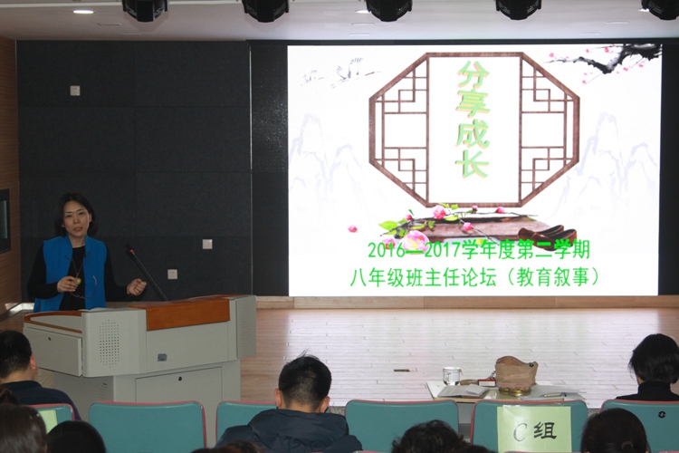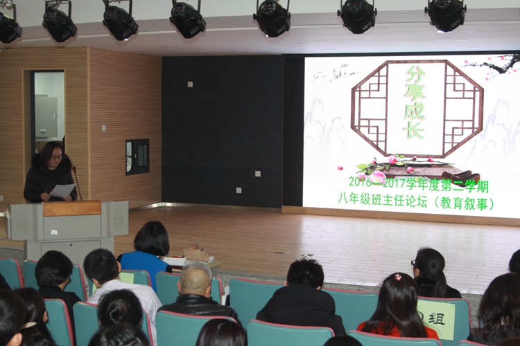 为了进一步让老师们在八年级下学期这一特殊时期能对教育教学管理理念又更近一步的改善,更为了分享引领教师极具个人智慧的工作策略,会议安排了七位班主任代表,围绕“构建提升现代师生关系”的主题进行主旨发言,七位班主任代表向级部的老师们分享了自己在工作中的失落与感动,挣扎与成长,迷茫与涅槃。