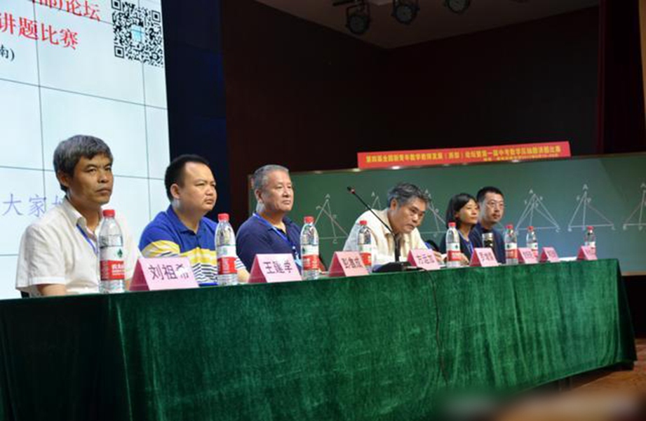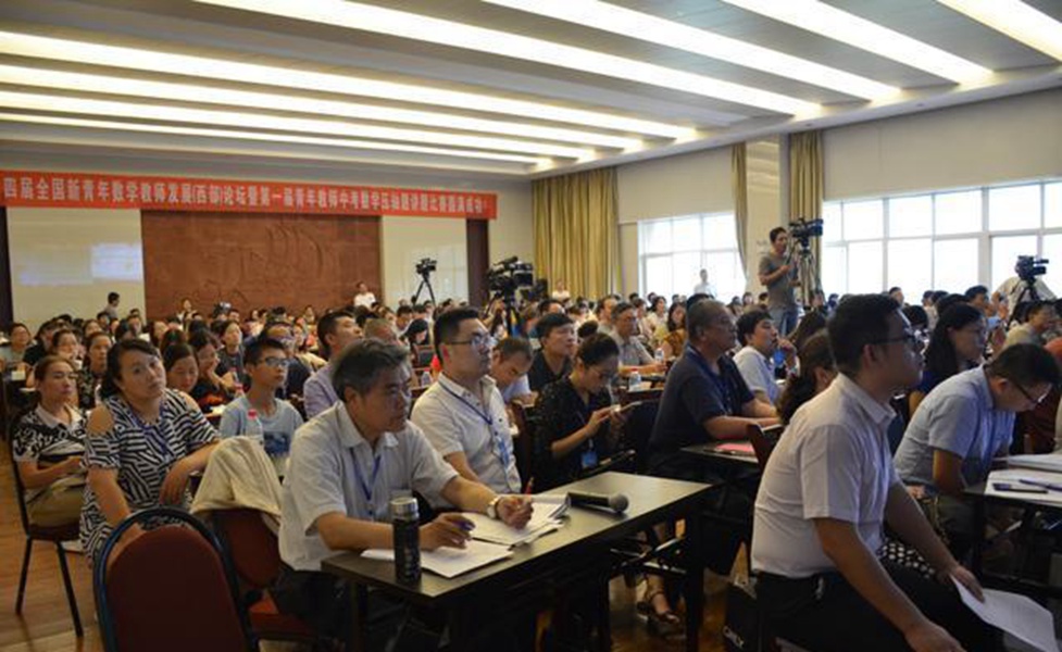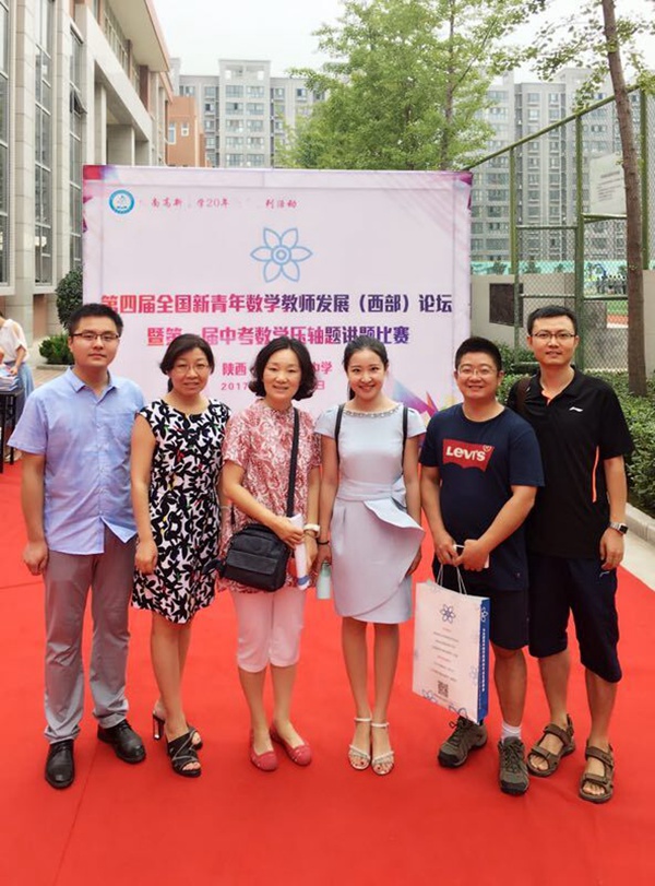 本次论坛特邀数学教育家、陕西师范大学博士生导师罗增儒教授,中国教育学会数学研究发展中心方运加主任,数学科普作家、华中师范大学彭翕成博士,几何画板研究专家、《挑战中考数学压轴题》作者马学斌老师等多位专家现场点评并作学术报告。来自全国21个省、市的400余人和10个代表队参加本次论坛。我校白燕、王晓红等老师也在论坛现场积极互动,妙语连珠,赢得了现场专家和同行的一致认可和好评。王晓红老师作为2017年陕西中考命题人,对2017年陕西中考第25题进行了精辟的解读,她对此题“明线”和“暗线”的揭示将会场气氛推向一个新的高潮。她谈到此题的“明线”是从三角形—四边形—圆,从简单到复杂、从特殊到一般、从直线型到曲线型、从静态到动态、从数学理论到实际问题的变化,而在整个变化过程中隐含着一条“暗线”——图形的“心”,三个小问的设置分别是:知心—找心—判断心。