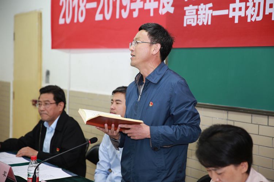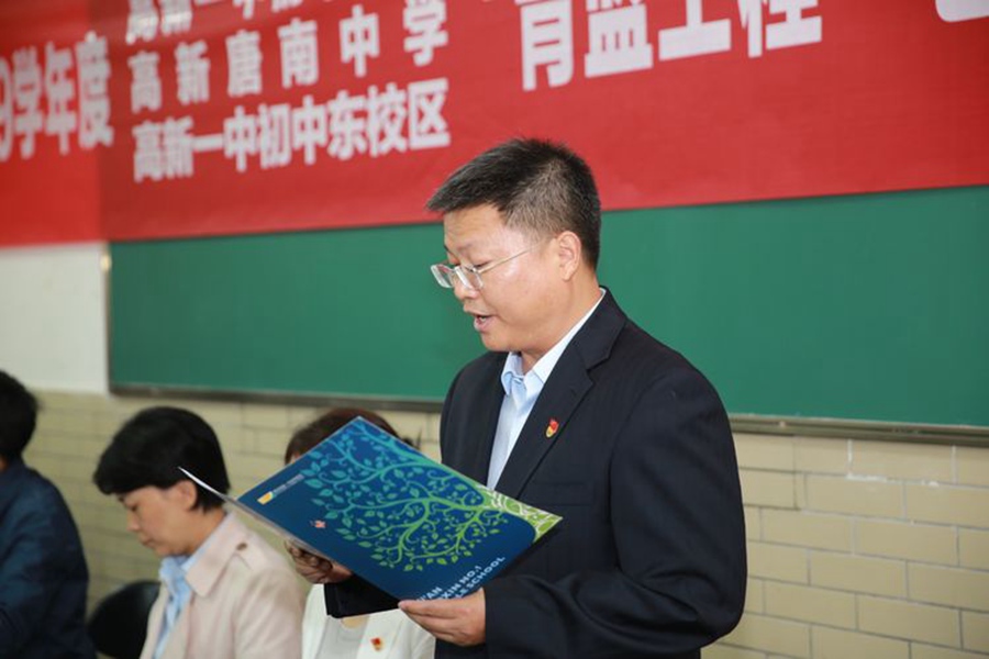会议由李政助理主持。首先由张颖助理和董军助理分别宣读《西安高新第一中学初中校区老带新教学指导协议书》和《西安高新第一中学初中校区老带新班主任工作指导协议书》,对师徒双方的职责权限作了一一说明,并对这次参加结对的新教师提出了殷切的期望。