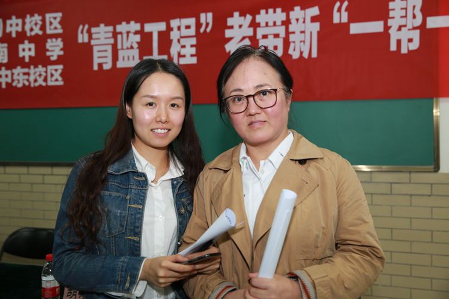 骨干教师代表王晓萍老师更是结合自身的成长经历,从师傅和徒弟两个角度为我们解读了“青蓝工程”的意义。无论是新教师充盈着期待的双眼,还是老教师“捧爱心于学生,携真实于教育”的身姿,都让我们真切地感受到了“青蓝工程”对于每个人的重大意义。