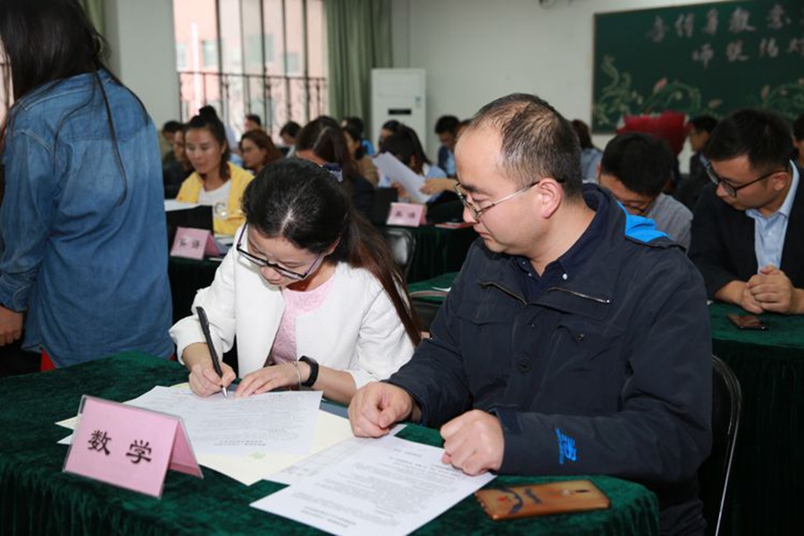 之后,胡清元助理宣读师徒结对名单,各位老师在协议上签下了自己的名字,签下了一份充满爱的缘分。