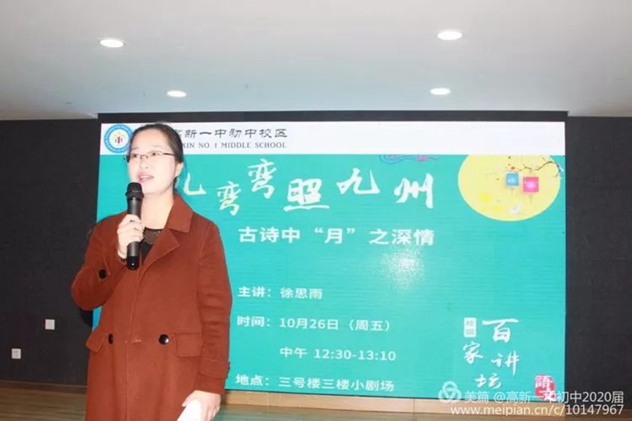 本次“百家讲坛之月儿弯弯照九州”由八年级语文组承办,教务处和政教处组织协调。