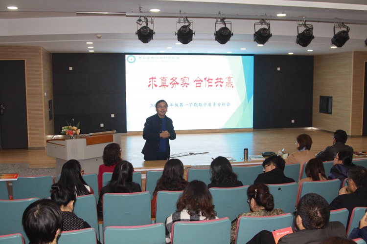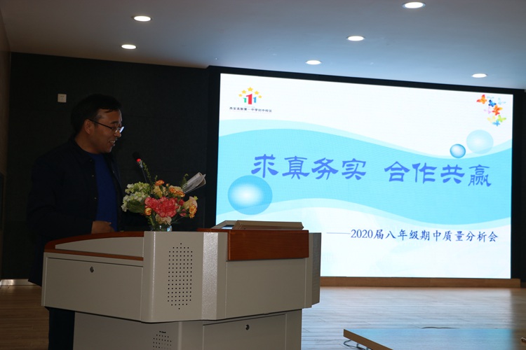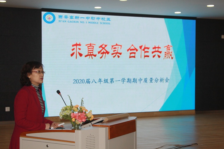 接下来,雒主任对八年级级部前半学期的教学的质量包括本次期中考试进行了分析。她总结道,本学期前半期的教育教学工作主要有以下特点: