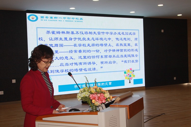 高新一中初中校区副校长刘丽君首先对本次会议的组织实施给予了肯定。接下来,刘校长做了主题为“坚持文化自信,扎根中国大地办教育”的讲话。