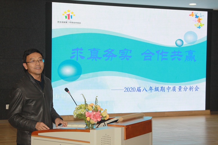 2018年11月29日下午,在3号楼三层小剧场全体2020届八年级的教职员工齐聚一堂,参加级部的质量分析会。高新一中初中校区副校长张振斌,副校长刘丽君,校长助理张颖、校长助理李政到场参加了会议。